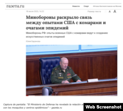 “Los experimentos de los militares estadounidense con mosquitos provocan el surgimiento de focos artificiales de epidemias”, esta declaración fue hecha por el jefe de las fuerzas de protección radiológica, química y biológica de las Fuerzas Armadas rusas, el teniente general Igor Kirilov. El Ministerio de Defensa de Rusia considera que las investigaciones de los “biolaboratorios estadounidenses”, financiados por la Fundación Bill y Melinda Gates han llevado a la creación de focos artificiales de epidemias de malaria, mosquitos y garrapatas.