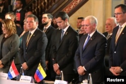 "Presidente Guaidó, (traigo) un mensaje muy simple del presidente Trump: Estamos con usted al 100 %", le manifestó el vicepresidente de Estados Unidos, Mike Pence al presidente interino de Venezuela Juan Guaidó.