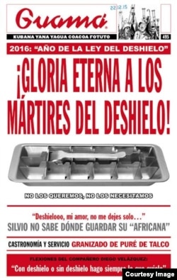 La palabra Guamá, escrita así, no tendría por qué traer a la mente de ningún cubano el nombre del boletín del Partido Comunista, Granma. Pero basta ver una imagen de la parodia gráfica del logotipo para darse cuenta. Sobre todo, si luego se lee: “Órgano oficial de los que han partido”.