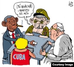 Hasta hoy. Ha hecho muchas caricaturas memorables, desde las que desenmascaran a quienes disimulan “solidaridad” con Cuba para hacer turismo de hipocresía y bajas pasiones hasta las de humor blanco, como esa donde todos los pasajeros de un avión apuntan con las cámaras de sus celulares al único que lee un libro. Pero una, la que pone a Liborio –el personaje-símbolo del pueblo cubano acuñado por Ricardo de la Torriente en 1904—arrastrando el seboruco donde descansan los restos de Fidel Castro, es una OBRA MAESTRA, así, con mayúsculas. Cuando se edite una antología gráfica de la sátira política cubana de la “revolución”, esa pieza tendrá que ser la portada.